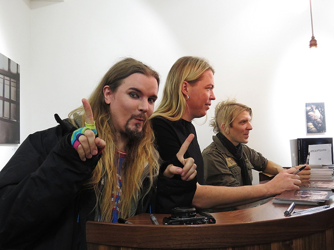 2016年1月、<VAMPS LIVE 2015-2016 JOINT 666(ジョイントスリーシックス)>で来日が決定しているフィンランドのチェロメタルバンドApocalypticaの待ちに待ったヘルシンキ公演があったので行ってきました。Apocalypticaは以前にも紹介したことがありますが、3人のチェロ奏者、Eicca Toppinen(エイッカ・トッピネン)、Perttu Kivilaakso(ペルットゥ・キヴィラークソ)、Paavo Lötjönen(パーヴォ・ロトヨネン)とドラマーMikko Sirén(ミッコ・シレン)から成るフィンランド出身のメタルバンドです。今年春発売になった最新作『Shadowmaker』ではFranky Perez(フランキー・ペレス)がヴォーカル担当。この春はSixx:A.M.と日本のバンドVAMPSと北米ツアー、夏は夏フェス出演、秋はヨーロッパツアーでその後のフィンランド国内ツアーが待たれてました。当日うれしいことにヘルシンキにあるTikettiギャラリーでまずはサイン会!