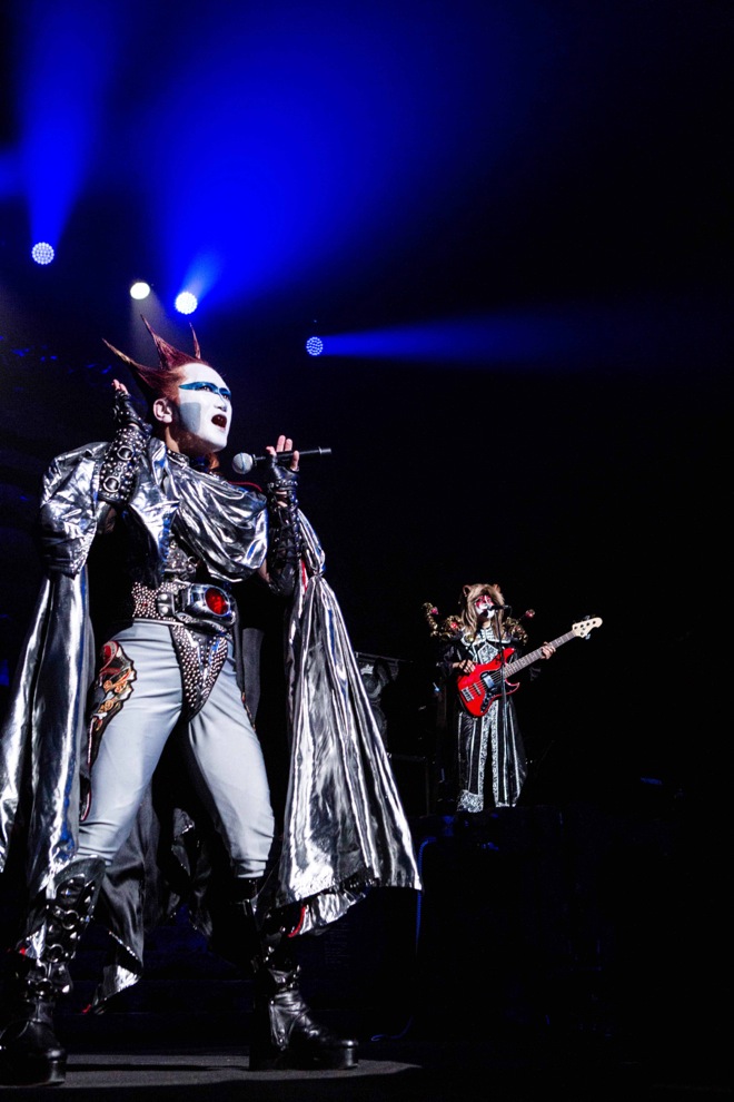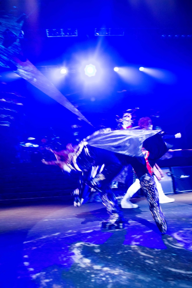 演奏中の演出も、合間の構成員のトークにも構成員のサービス精神があふれ、そこには笑える要素もたっぷりとこめられている。会場中が、興奮と笑いの坩堝と化していった。以下、11月8日に福岡サンパレスホテル&ホールで執り行われた大黒ミサの模様をダイジェストにてお送りしたい。