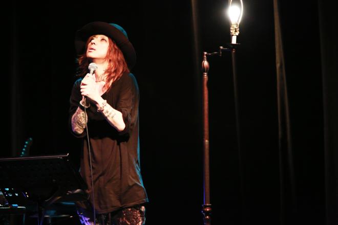 約30分後の午後9時を少し過ぎた頃、この長いシリーズ、ラスト1本の公演が始まる。第二部の最初に披露されたのは「2月」だった。このホールで吸い込んだ四季の香りを思い出させてくれるような歌声が響き渡る。「情熱の影」「YOU」「影絵」など、曲が終わった後の余韻さえも味わい尽くしたくなる名曲が続き、いよいよ生命力を増す清春の歌唱。「基本的にはノーリハで、珍しい曲だけテンポを決めてという形式でやってきました。その場で思い描いた言葉でも歌ってきました」。人間のあらゆる感情の動きを丹念に表現する彼の姿を観るたびに、自分が生まれ変わるような感覚を得る。時折マイクを通さずに歌う瞬間の迫力も、ライヴの醍醐味を感じさせてくれた。