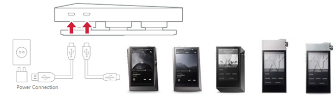 対応するAKプレーヤーとは付属のOTGケーブルで接続する。近日発売予定のAK380/AK320用クレードル経由で接続することも可能となる。電源は付属のmicroUSBケーブルで、USB対応ACアダプター(5V/2A)などを用いてコンセントに接続、対応製品となるAK380/AK320/AK240/AK120II/AK100IIは最新のファームウエアにアップデートする必要がある。