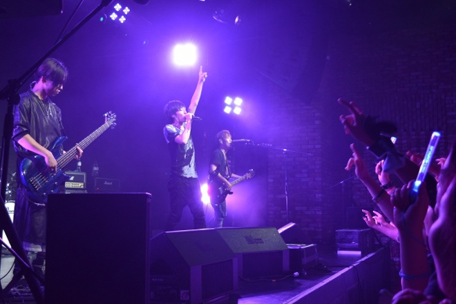 「韓国ライブは前回もここでやったんですけど、今日で2回目。前回来られていると若干困ることがあって……カミングアウトしていい? 俺、あんときと服一緒だよね? 別にお金がなくて服買えないとかじゃないからね(笑)」とIKEが砕けたトークでフロアを温めると、UZは「チェゴ~(最高だぜ)! 今年2回目だからね。一年のうちにこうやってまた足を運べて、またみんなに会えることができて、本当にうれしく思っております。ありがとうございます!」と語り、MOMIKENも「ハングサランヘヨ~!(みんなを愛してます)」と韓国のファンへ感謝の気持を伝えた。