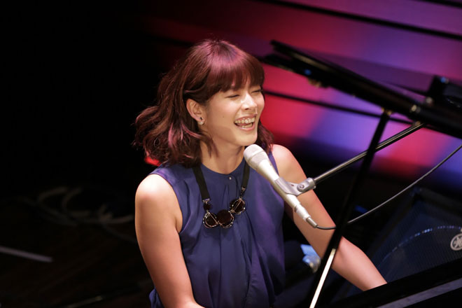 井上陽水、MISIAなどが熱いラブコールを送るピアノポップ・シンガーソングライター、澤田かおり。圧倒的なヴォーカルを武器にアラサー女子の等身大のメッセージを歌いあげ日本のキャロル・キングと称される彼女のメジャーデビューアルバム『Songwriter』が11月4日にリリースされたが、11月24日(火)大阪心斎橋Music Club JANUSに続いて、12月3日(木)には東京ヤマハ銀座スタジオで澤田かおりLIVE 2015 「Songwriter」が開催された。両日のライブとも、メンバー:Vo.&Pf.澤田かおり、Dr.白根佳尚、Ba.SOKUSAI、Gt.知野芳彦という実力派豪華布陣のバンドスタイルで、熱いライブがおこなわれた。