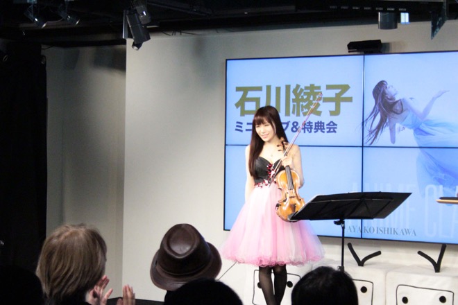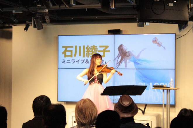 テレビ朝日「関ジャニの仕分け∞」バイオリン王No.1決定戦にて優勝し、現在、ニコニコ動画を中心に人気の美人ヴァイオリニスト 石川綾子。彼女のメジャーデビューアルバム『ANIME CLASSIC』リリース記念イベントが、12月9日に池袋のニコニコ本社にて開催された。
