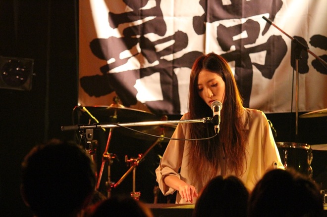 再びあいみょんが登場し、「日食なつこ」と書いた紙を掲げると、続いては岩手県出身の日食なつこの登場だ。ステージ中央に構えたピアノに座ると、先日12月9日にリリースしたばかりのフルアルバム『逆光で見えない』から「跳躍」、続けて軽快なナンバーの「水流のロック」を披露し観客を自身のフィールドへと引き込んだ。また、主催者であるあいみょんに対して、「素敵なイベントに呼んでくれてありがとう。ギターもうまくて曲もかけて、しかも達筆で。もう嫁に行け!」とメッセージを送る場面も。その後も『逆光で見えない』から惜しみなく新曲を披露していくと、ラストはミュージックビデオも作られているアルバムのリードトラック「ヒーロー失踪」で締めくくった。