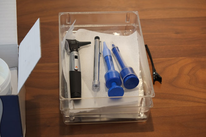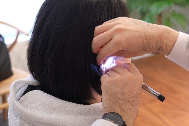 事前に電話で予約を済ませ、編集長と共に東京ヒアリングケアセンター 青山店 認定補聴器専門店へ向かった。まずは耳に異常が無いか確認。その際、採取担当の方(以下Aさん)に「ピアスは普段から付けているものですか?」と尋ねられた。重量があるピアスだと耳が引っ張られることになるので、手間を省くためにボディピアスのような常に付けているもの以外は事前にはずしていった方が良さそうだ。