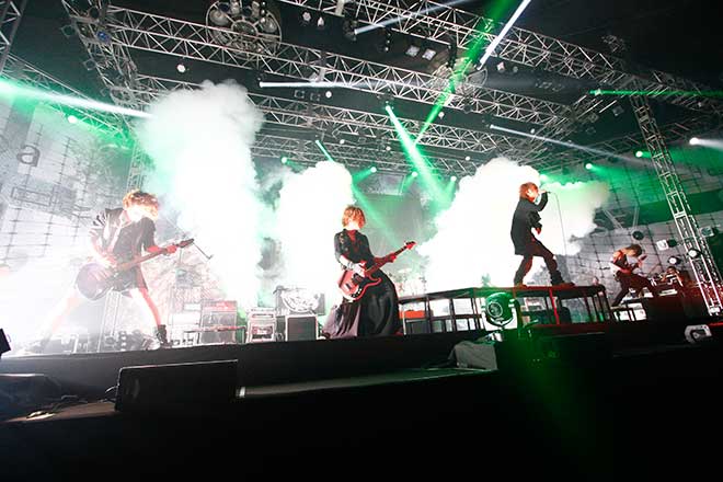 後半は「ROACH」「My second B-day.」「Good girl gone bed.」と、アルバム『LAYOUT』からのハードチューンで畳みかける。ライブでのマストナンバー「LION HEART」では、アリーナのスペースをフルに使い、左右に迫り出したステージを、Tohya(Dr)のグルーヴに合わせて、智、海(G)、Yuh(G)、瑠伊(B)が縦横無尽に駆け巡りファンの目前でパフォーマンスを見せた。