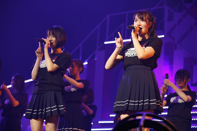 続いて全員センターコーナーでは、2日間に分けて全アンダーメンバーがランダムでセンターになり楽曲を披露。「おいでシャンプー」や「何度目かの青空か?」など往年のヒット曲も交えながら構成されたセットリストはファンも堪らない様子だ。「立ち直り中」のセンターを務めた寺田蘭世は、「一番先頭にいると、誰も見えないから不安で、振りを間違えたらどうしようかと思ったけれどセンターに立って歌わせてもらってすごく嬉しかったです」と歓喜の気持ちを語った。