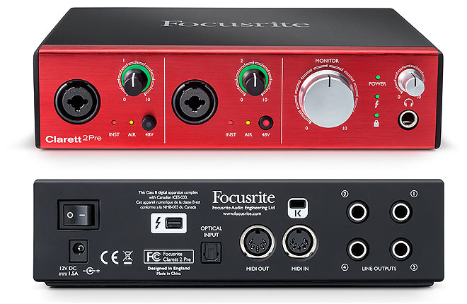 Focusriteからホームレコーディングやライブ環境に最適なオーディオインターフェイス「Clarett 2pre」登場