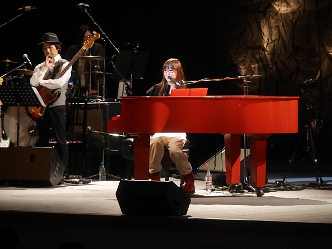 ファンの拍手の中ステージに現れ、中央の赤いピアノについた奥がまず最初に弾き始めたのは、彼女のメジャーデビューのきっかけになった楽曲「花火」そしてインディーズ時代からファンにも愛されてきた奥華子の“失恋ソングの原典”ともいえる「楔 -くさび-」。恋愛をベースにしつつ人間の情を鮮やかに描き出す歌詞と、切ない中にも温かみを感じさせるメロディがホールを包み込む。