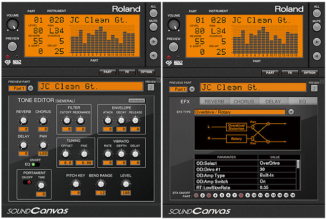 気になるのがハードウェア音源との互換性。「SOUND Canvas VA」には、「SC-8820」「SC-88Pro」「SC-88」「SC-55」の音色配列が搭載されるので、過去の曲データを楽しむのに問題はないはず。演算精度の向上でリバーブなどのエフェクトがより高品位になっているのも見逃せない。