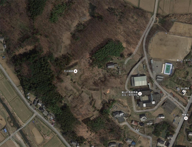 城の大手は玉ノ岡中学校に登る道を上がり、積善寺の墓場の横を上がったら大手だ。現在の玉ノ岡中学校がある場所も城の麓にある館の跡だと私は推測する。本丸からの中学校の眺めも最高であるが、校舎からの杉山城の眺めも素晴らしいはずだ。だがきっと生徒も教師も含め杉山城の凄さや熱さに興味ないだろうな…。言ってしまえば積善寺の場所もひとつの曲輪だと断言したい。何も今残っているところだけが杉山城ではないのだ。杉山清貴&オメガトライブも何もヒット曲は「ふたりの夏物語」だけではないのだ。「SUMMER SUSPICION」も、だ。おい!冬なのにどちらも夏の歌ではないか。
