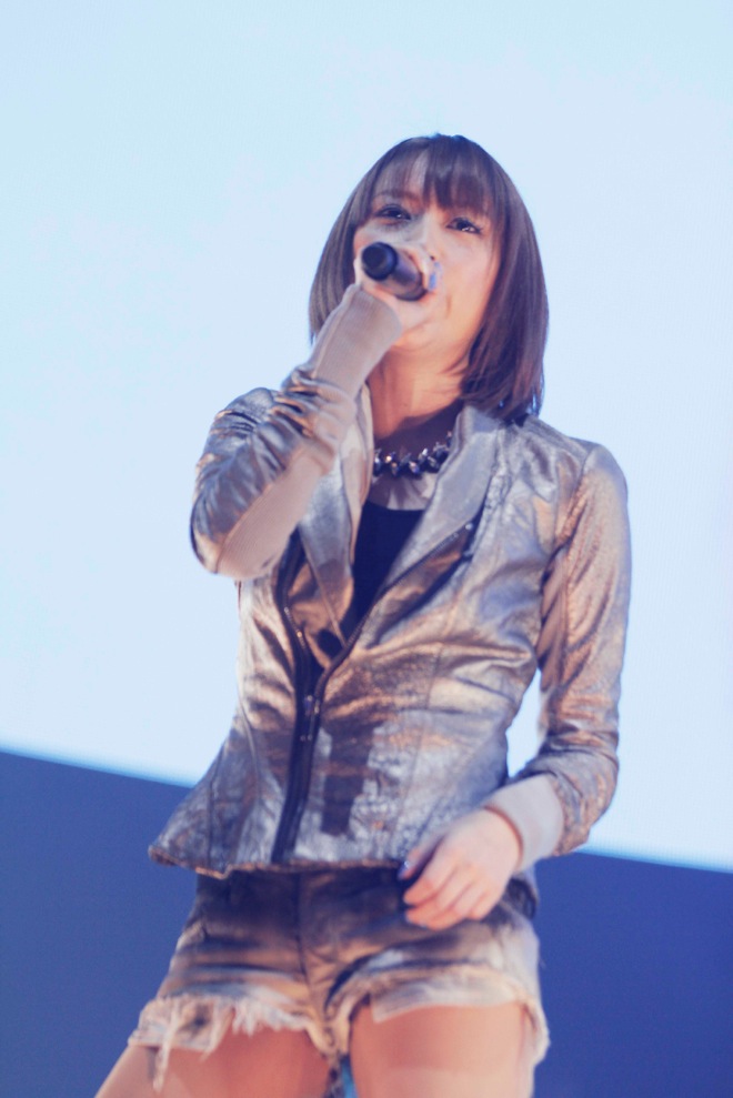 ASTRO ARENAで行われたステージは、ツアーを一緒に周るバンドメンバー5人を引き連れてのもの。これまでアニメ系イベントに出演する機会が多かった藍井エイルは初の同イベント出演を前に緊張の表情を浮かべつつも、「楽しんでいこう!」という掛け声とともにステージへ。