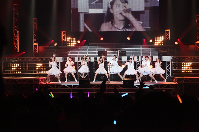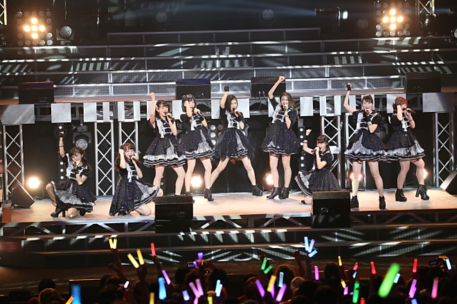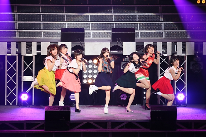 次にステージに颯爽と登場したのは、ハロプロ内最年長となった℃-ute。安定感あるパフォーマンスはで存在感を見せつける。ステージは各グループが2015年に発表した楽曲を中心に構成され、湘南乃風 SHOCK EYEが制作した「我武者LIFE」のサビではタオルパフォーマンスで観客を魅了した。