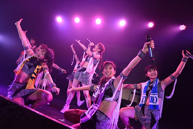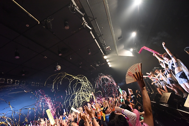 「虹色モザイク」からは、楽曲がDJミックス化されたEDMメドレーへとなだれ込む。「UPPER ROCK」「青春の涙」などバキバキなサウンドから、センシティヴな「Starry Night」、キャッチーなメロディが光る「ランランラン」など、カラフルなナンバーが次々と披露される。「美女の野獣」「(仮)は返すぜ☆be your soul」など、激しさを存分にアピールしたあとは、「チョッパー☆チョッパー」「ジャンパー!」で会場の熱量はレッドゾーンに突入した。