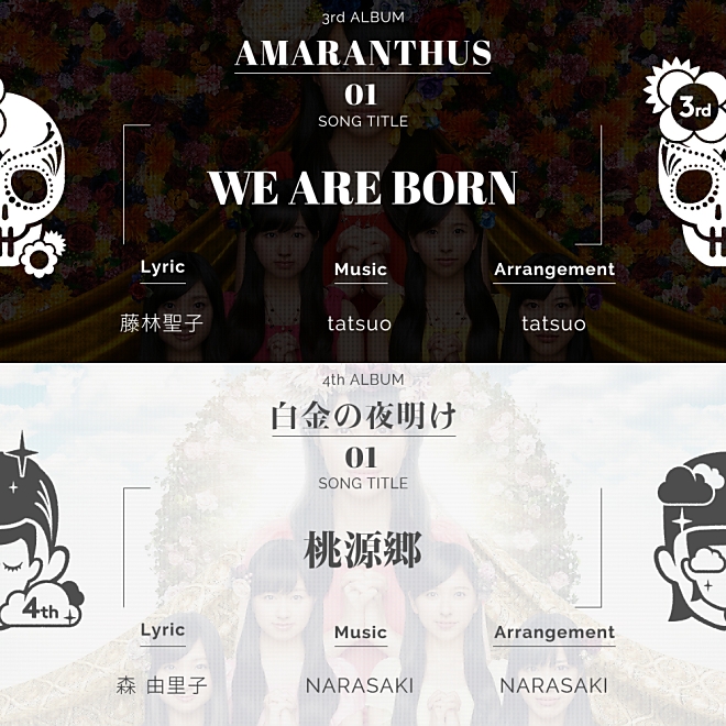 先日アーティストビジュアルが解禁されたばかりの3rdアルバム『AMARANTHUS』、4thアルバム『白金の夜明け』。3rdアルバム「AMARANTHUS」の1曲目タイトルは「WE ARE BORN」に決定した。「WE ARE BORN」は作詞をJ-POPのみならず、ONE PIECEや仮面ライダーシリーズの作詞でも知られる藤林聖子、作曲・編曲をゴールデンボンバーの編曲や仮面ライダーシリーズへの楽曲提供で知られるtatsuoが務める。