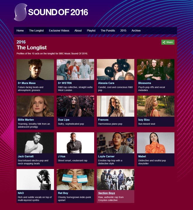 <Sound Of 2016>の候補は以下の通り。