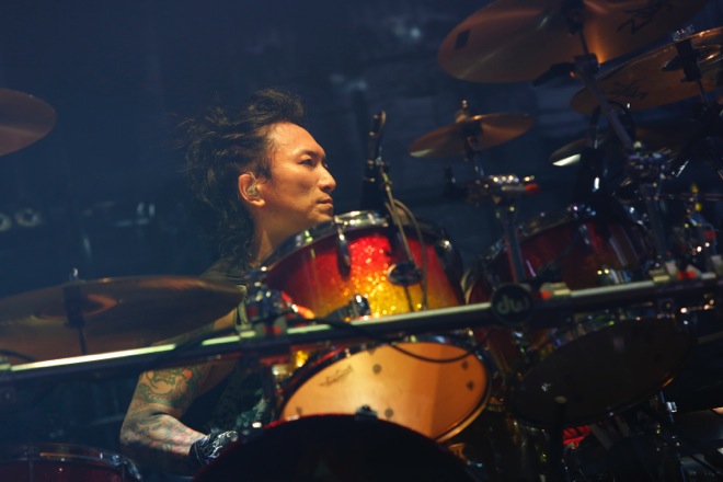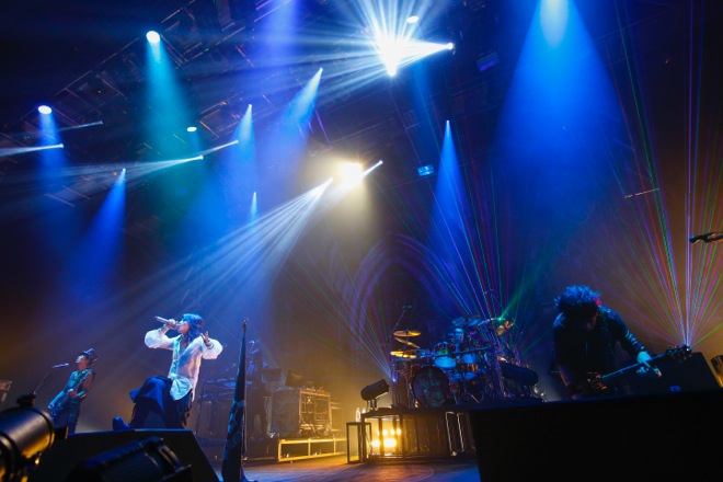 「みんなに質問! 人の傷を癒やしたり、心の中の弱い部分を吹き飛ばしたり、音楽にはすげぇパワーがあるって気づいちゃってるヤツ、自分自身を貫いて音楽をやってるVAMPSがマジでやべぇとわかってるヤツ、Hands Up!」と煽り、ラストはダイナミックな盛り上がり必至ナンバー「Master Blaster」で圧倒。熱きステージをVAMPSへとつないだ。