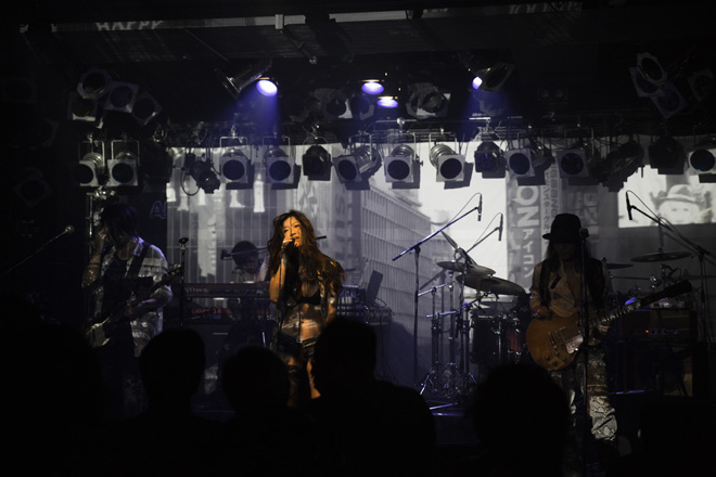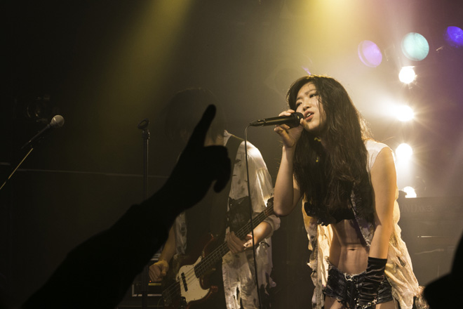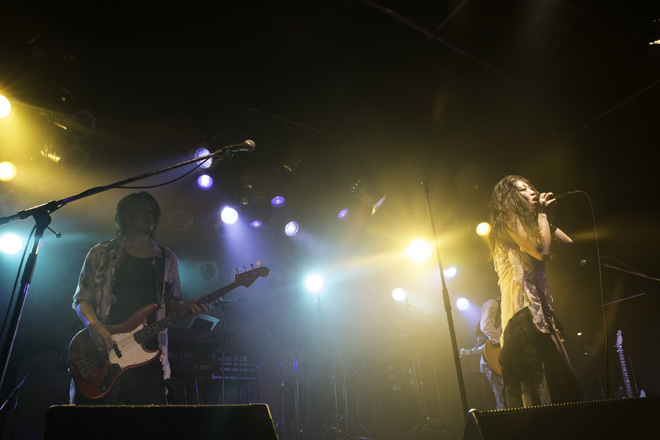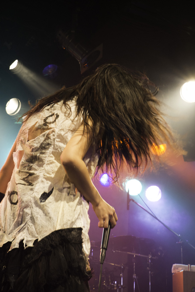 心を隠す事なく感情をさらけ出して歌い上げるバラード「月光」「あいつ」そして、シングル「あたし、あたし、あたし。」では、孤独や絶望の中にある一筋の光をつかもうと必死にもがき前に進む魂の叫びを聞かせる。余韻に浸る間もなく、一転して重厚な音が疾走する「Lost World」、ストレートなロックサウンドの「ホワイトホール」では、かけ声と拳が振り上げられ会場のボルテージを上げ続けて本編は終了となった。
