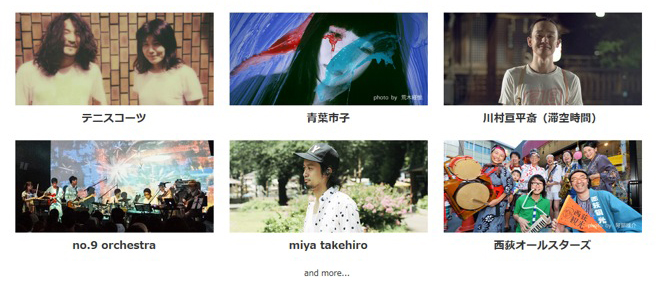「西荻ステージ(音楽)」:テニスコーツ、青葉市子、川村亘平斎(滞空時間)、no.9 orchestra等、西荻に縁のあるミュージシャンによる音楽ライブ。
