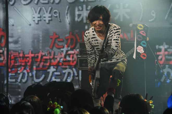 他にも、「嘘も100回言えば真実」で骨太なサウンドを轟かせれば、“同窓会”がテーマになっているスカナンバー「D・S・K」では、メンバーが学生服を着た写真をビジョンに放映。いつもはポテチを客席にバラまくのが定番になっている「ニート姫」では、4周年で“めでたい”ということで、大量のたいやきをフロアに投げ込むなど、あらゆる方法でオーディエンスを盛り上げていた。