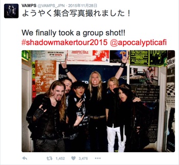 | ▲<Apocalyptica Shadowmaker UK Tour 2015> VAMPSオフィシャルTwitterより |