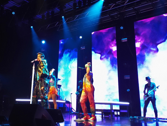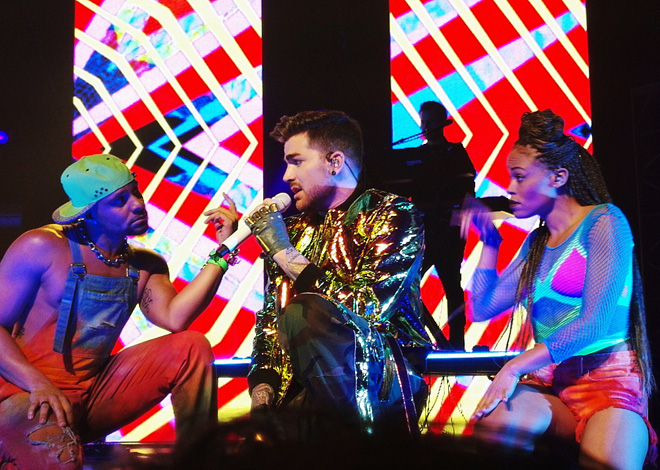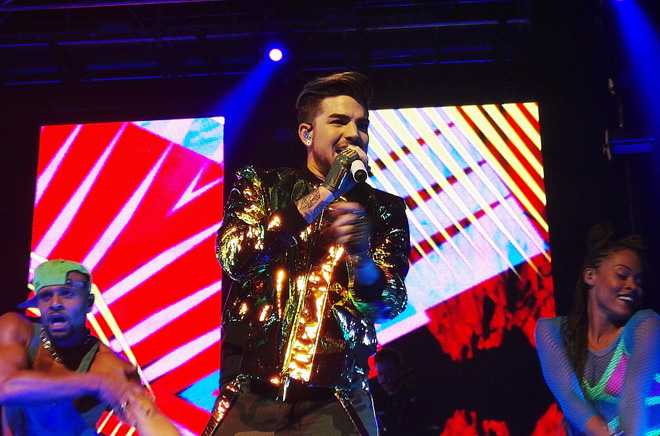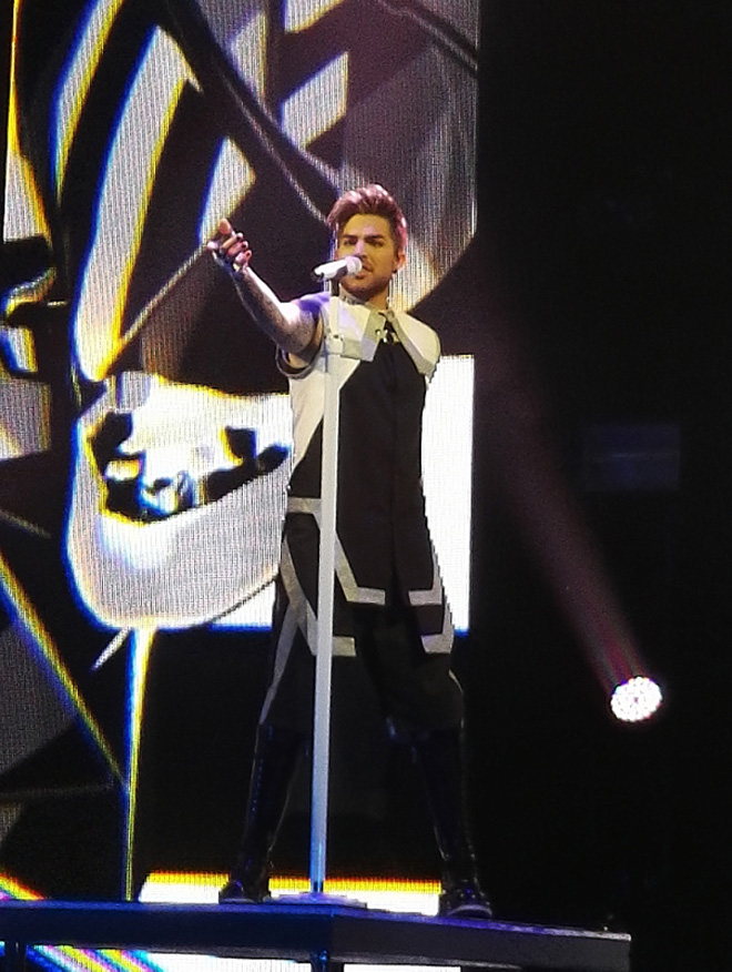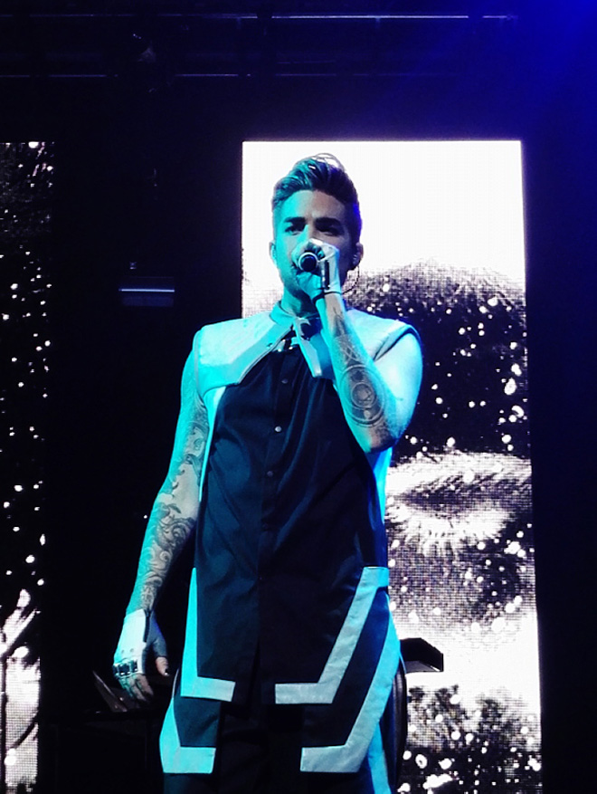 第3部は大阪で初登場したゴールドのジャケットにゴールドのサスペンサーつき迷彩柄パンツで登場。サスペンサーを肩にかけずなにげにたらしているとこがつぼ。最後はアップテンポの曲が多くダンスナンバーを集めていました。アヴィーチーとのコラボ曲「Lay Me Down」から「Shady」そして「Fever」と続くあたりは見てる側もついつい体が動くほど楽しい。近年はあのクィーンのヴォーカルも勤めているアダム。最後は「Trespassing」とメロディで「Another One Bites the Dust」を披露してくれました。この第3部の途中で「昨日は悲しい日になった。Mr.デヴィッド・ボウイがこの世を去った。彼が大好きだった。」と彼の曲をトリビュートすることにしたと披露してくれたのが「Let’s Dance」。いきなりセットリストに入ったとは思えない出来で素晴らしかった。そしてデヴィッド・ボウイが亡くなったことを悲しむ気持ちは皆同じなんだ。この曲をやってくれてほんとにありがとうと心の中で思いました。アンコールは「If I Had You」のレゲエヴァージョン。最初にこのレゲエヴァージョン聴いたときは、むむ、これは宴会バージョンか?(笑)と思ったのでありますが、レゲエのリズムに合わせ今回のツアーのバンドメンバーとダンサーをたっぷり時間をとって紹介するアダムはすごく楽しそうで、レゲエヴァージョンもこうやって生で観るとなかなかいいかもしれないと思った(笑)のでありました。