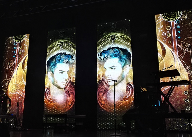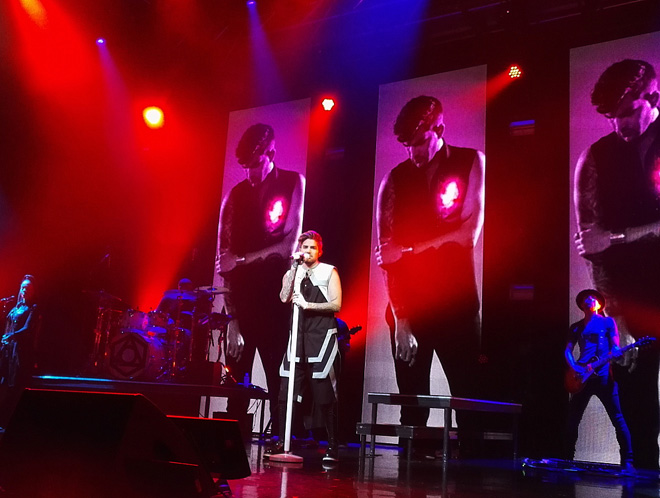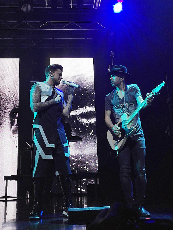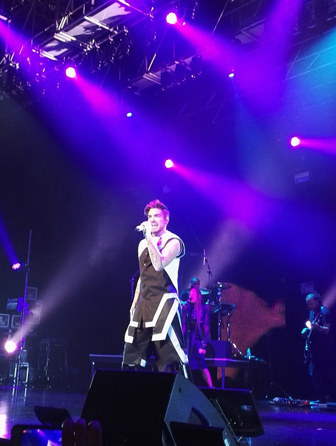 会場のライトが消えると大きな歓声が響き渡る。最新作からのファーストシングルになった「Ghost Town」の口笛をアレンジしたイントロが流れ、ステージの背景にADAMの文字が1文字づつ増えながら映し出され、いよいよ始まる!とわくわくドキドキ!オープニングナンバーは最新作からダークでハードにかっこいい「Evil In The Night」できた!後ろのスクリーンにスカルが映し出され、くるくる回ったり、なんともこの曲にぴったりでかっこいい!曲は大ヒットした「For Your Entertainment」、さらに「Ghost Town」へと続く。今回の公演は3部構成になっていて、第1部になんとセカンドアルバム「Trespassing」にボーナストラックとして収録されている「Runnin’」がはいっていたことにびっくり。この曲大好きだったのでありますが、ボーナストラックということで、今まで生で披露したことはなく、今後もセットリストに入ることはたぶんないだろうと思っていただけにうれしくて、うれしくてとにかくうれしかった!同じ思いのグランバーツ(アダムファン)さんは多かったはず。