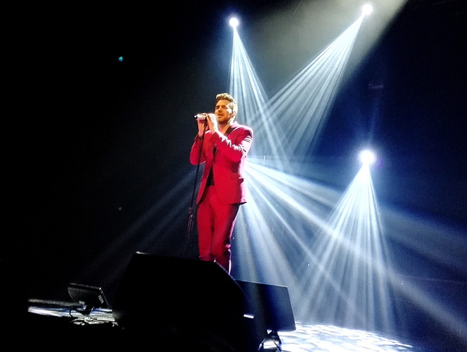 「Lucy」を歌い終わった後、ステージをバンドと2人のダンサーに譲りアダムはバックステージへ衣装がえに。第2部はバラードを中心にしっとり歌い聴かす構成で濃いピンクのスーツで登場。大ヒット曲「Whataya Want From Me」は何度聴いても心をうたれて素晴らしい。アメリカンアイドルで歌って人気だった「Mad World」から最新作の中で1番涙腺が緩む「There I Said It」は彼の歌唱力が一段と引き立ち素晴らしいの一言につきる。「Another Lonely Night」は恋人と別れた後の気持ちをつづったものだが、湿っぽさはなく、この曲のミュージックビデオをみると人を楽しませ、ハッピーにさせる職業についてる人でも家に帰れば1人のロンリーな夜を過ごす人はいっぱいいるがそれも人生さといってるようで、さらっと歌うのでありますが、途中いきなり輝くスポットライトに照らされた時のしぐさがなんともうっとりドキドキなのであります。