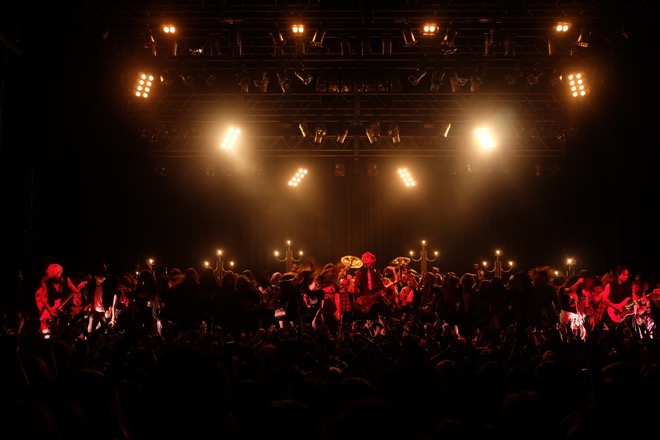 1曲目を飾ったのはミディアムナンバー「BIRTHDAY~ダミ嬢の憂鬱~」。今回のライブのコンセプトにも合致したこの楽曲では、赤い光に照らされたファンとka-yuが妖しく溶け合うようだった。「渋谷! ここから飛ばしていくぞ!」の言葉のあと、続いては「ダーミー城の吸血悪魔が愛したマリア(泣)」。ここから会場のボルテージは一気に上がる。続く「薔薇の棘」では、客席のすべてが揺れているように頭が振られる。