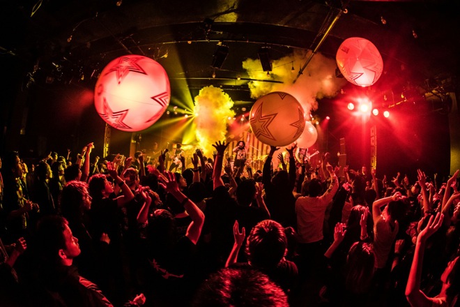 同ライブをソールドアウトさせたHER NAME IN BLOOD。当日、彼らのライブは、この2マンライヴの対戦相手NOCTURNAL BLOODLUSTのライヴが終了後、昨年リリースしたEP『BEAST MODE』の1曲目「BEAST MODE」で幕を開けた。同EPの曲順どおり、「LET IT DIE」、「BLEED ON」とたたみかけていったという。「GASOLINES」では“YEAHHH!!”と書かれたボードを手にDAIKI&TJのギター2人が観客を煽りまくり、OFFSPRINGのカバー「PRETTY FLY」では巨大のビーチボールがフロアを舞い、一気にフロアがパーティー・モードになる場面も見られたという。