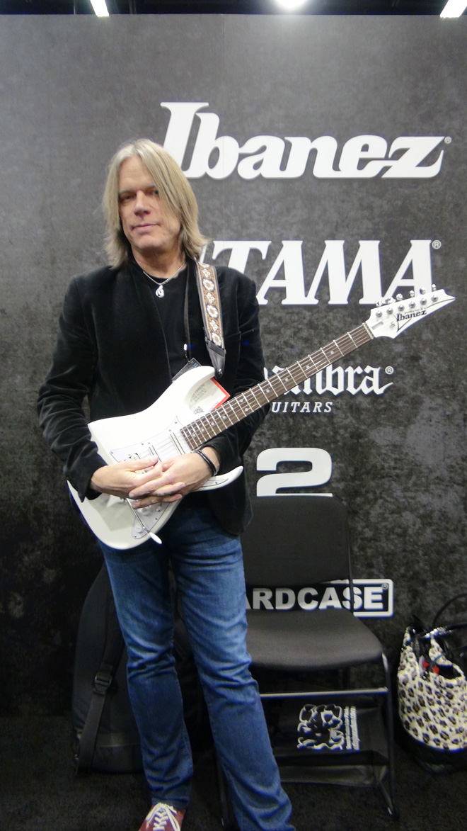 アナハイムで開催された世界最大規模の楽器ショー<The 2016 NAMM Show>にて、星野楽器IbanezとJHS Pedalブースにアンディ・ティモンズが登場、自らのシグネーチャーモデルを紹介してくれた。