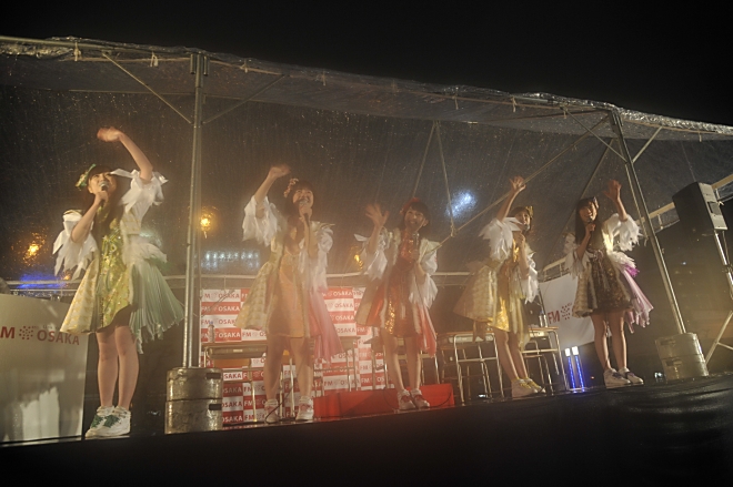 ここで、ももいろクローバーZから、激しい雨の中見守るファンへのサプライズで「アカペラで歌を披露します。」という発表が、メンバー全員で話し合い「近隣の迷惑がかからないように静かに聞ける曲を」、という計らいで「キミノアト」を集まった3,000人に披露しました。突然のサプライズにファンからは「ありがとうー!」という大歓声の中イベントが終了した。