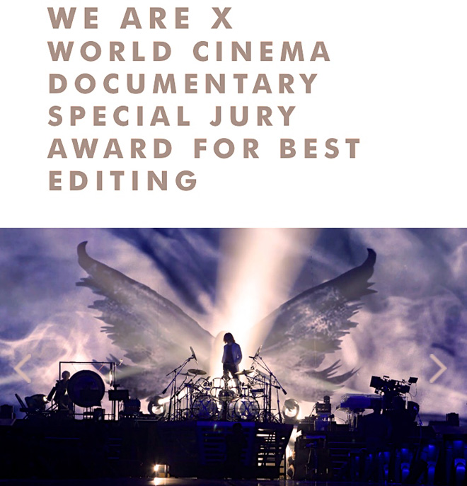 ロサンゼルス現地時間1月30日、2016年米サンダンス映画祭の受賞者が発表され、X JAPAN のドキュメンタリー映画『We Are X』がワールドシネマドキュメンタリー部門の最優秀編集賞を受賞した。