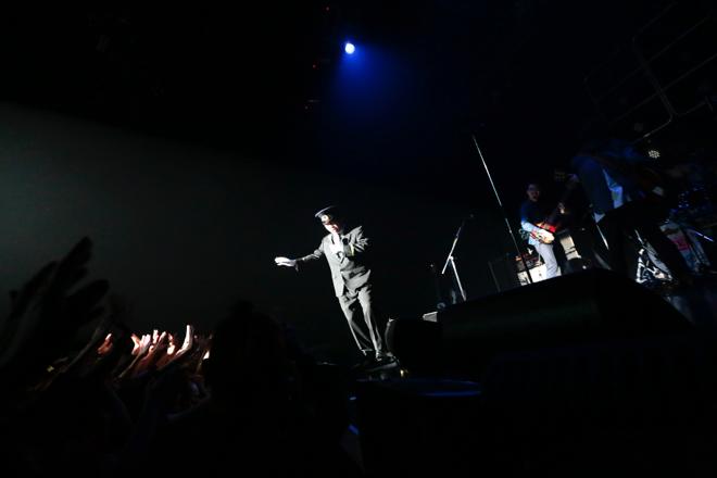ライブはSE「OVERTUNE」からスタート。曲中の会話とともにメンバーがステージに現れ、1曲目「Dance With You」から濃厚な演奏で有無を言わさずオーディエンスを物語の中に引きずり込む。ダンスビートに差し込まれる太いベース、歪むギター、それらを乗りこなすヴォーカルで展開する「アップサイドダウン」から「NOISE 90」の流れに続き「TOMMY?」では、実際にアルバム内で車掌役を務めたノザキ君(野崎浩貴)が登場するサプライズも。打ち込みを活かしながらそれを凌ぐプレイでアレンジを施し、生々しさを損なわないバンドに舌を巻く序盤となった。