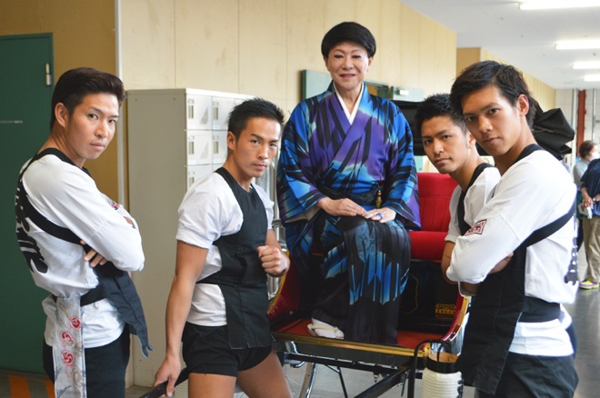 またMCでは、“浅草”そして古き良き伝統文化である“人力車”を、エンタテイメントを通して、日本だけではなく世界に伝えたいと目標を語り、観客からは大きな拍手がおこるという場面も。そしてついに、東京力車が牽く人力車に乗って美川憲一がステージに登場すると、会場は更に大きな盛り上がりを見せた。