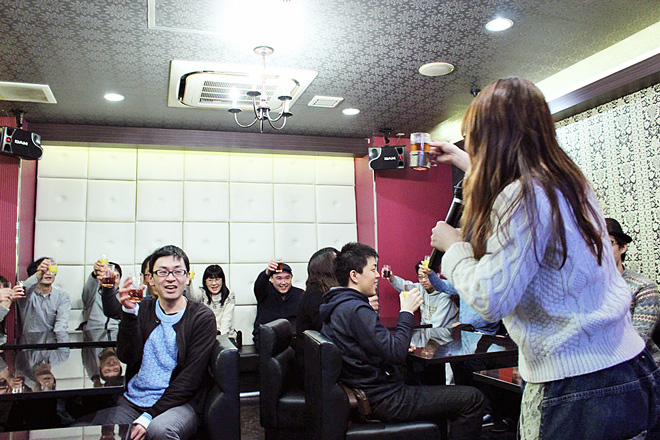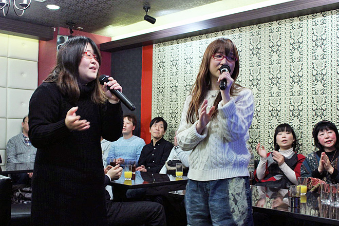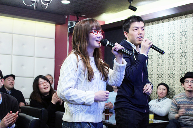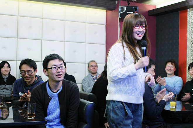 このイベントは、「奥華子デビュー10周年記念スペシャル企画」としてCDを購入して応募、及びDAM★ともで課題曲を歌い応募して抽選で選ばれた方が参加して、福岡・仙台・東京・名古屋・大阪で行われたもの。各会場2回づつ開催された新年会は、年代によって普段歌う曲や聴いている曲が違うだろうと、1回目と2回目で参加者の年代を大きく2つに分けて開催された。老若男女幅広い層のファンを持つ奥華子だからこその配慮だ。このレポートでは1月30日に東京で2回おこなわれた中から、2回目のカラオケの模様をお伝えする。