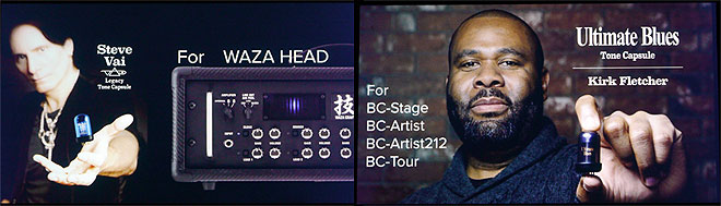 ▲スティーブ・ヴァイ監修のWAZA-HEAD専用Legacy Tone Capsule、カーク・フレッチャー監修のBlues Cube専用Ultimate Blues、2種類のトーン・カプセルも登場する。