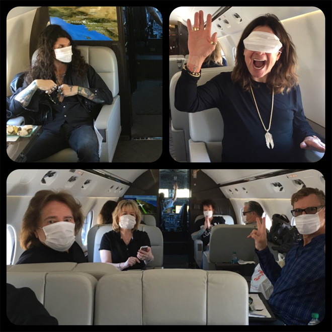 現在、オジーおよびメンバー、スタッフの体調は良好の模様。土曜日の公演を前に「フェイス・マスクが効いているようだ」と、移動中のフライトの中で全員がマスクをつけている(正しい使い方をしていない人1名を含む)写真がTwitterに投稿された。