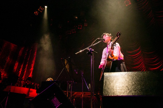 静かに流れるチェロの音がフェイドアウトし、植田の登場を待ち構え静まり返る客席に、打ち寄せる波の音が深く響き出す。深い海に包み込まれるかのような感覚の中、ステージに登場した植田の姿に大きな拍手が沸き起こった。真暗なステージに、きらきらとしながらもどこか懐かしいようなピアノの音色が流れ出すと、<Lazward Piano>ツアーの一曲目を飾るのは「さよならのかわりに記憶を消した」だ。物語を紡ぐような切なく悲しいバラードで観客をぐっと引き込み、続く「優しい悪魔」では優しく噛み付くように、そっと各々の心に痕を残していく。