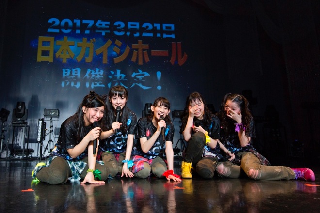 メンバーからの紹介で3月12日に開催される<JK卒業式>の告知がスクリーンに映し出されると、そのままスクリーンには別の映像が。知らない内容が流れ「なにこれ?!」と動揺するメンバーをよそに、「ARE YOU READY!? 2016」という文字に続いて「5月21、22日:幕張メッセ」、「8月31日:日本武道館」、「11月13日:横浜アリーナ」と来たるライブの会場と日程が立て続けに発表。さらに映像は続き、そこには結成年(2012年)の頃から目標としていた「2017年3月21日ガイシホール公演決定!」の文字が。この瞬間、会場からはこの日一番の歓声が上がったようだ。メンバー一同「聞いてない!」「うそでしょー!」と驚きを見せ、咲良菜緒は「最高かよ!」と叫び喜びを爆発させると、「一年以上先までの予定を発表したから、みんなも強制的についてこないといけなくなったからね! 大きい会場にふさわしいライブを披露できるように私達も頑張ります!」と意気込みを語った。