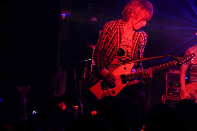 当日はプレミアムチケットを手に入れた大勢のファンが会場に詰めかけ、一日早いお祝いムードが漂う中、主役の登場を待った。時計の針が開演の時間を示すと、いつものカメレオンが描かれたパネルとは違い、この日はメンバー全員がHIKARU.(Vo)の顔のパネルを装着してステージに登場。「俺、まだ誕生日じゃねぇよ!!」とHIKARU.の魂の叫び声がフロア全体に響き渡ると、アッパーチューン「で?」でライヴがスタート。激しく拳を突き上げてフロアの温度を上昇させ、「擬似コミュニケーション」「嫌な奴ね、アンタ」など、この日は歌って踊る5人ヴォーカル曲を封印し、久しぶりのオールバンドスタイルで畳み掛ける。