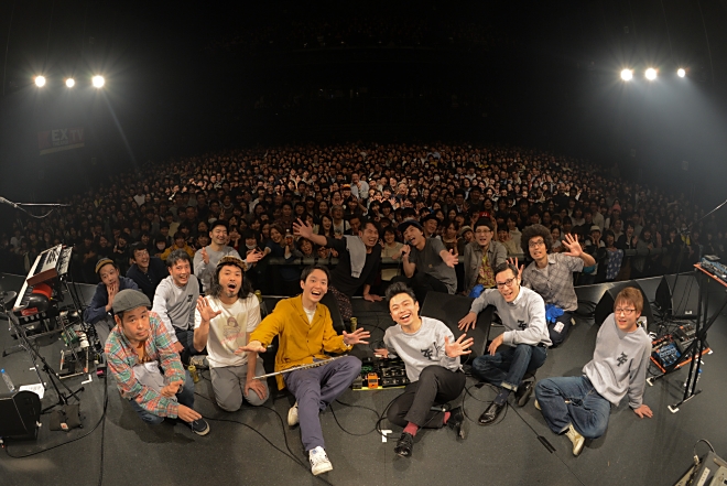 最後は、ステージに在日ファンクが再び登場し、仲睦まじい記念撮影で新春ライブ初の2マンの幕が下りた。