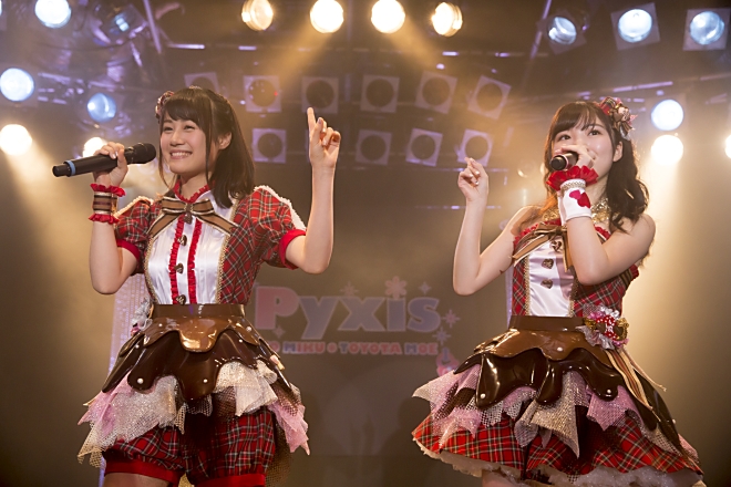 豊田萌絵と伊藤美来によるユニット「Pyxis」の1stライブ<Pyxis 1st Live Pyxis Party 2016 ~ Happy Valentine’s Day ~>が、2月14日にYOKOHAMA BAY HALLにて開催。ステージ上では新曲も披露された。