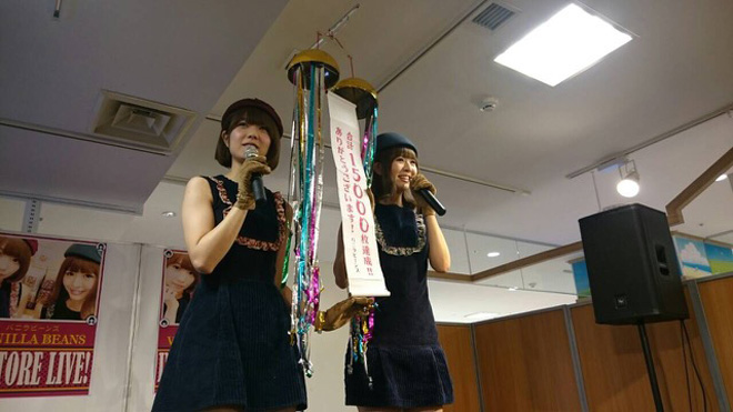 この日、メンバー2人よりも高い大きなくす玉が用意され、中からは紙吹雪とともに「合計15000枚達成!! ありがとうございます!バニラビーンズ」と書かれた垂れ幕が現れ、その裏には「応援、ありがとうございました!」「これからもさらに頑張ります」という2人からのメッセージが書かれていた。