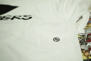 烏丸:フーファイのも面白いよ。脇の下っていう意外な場所に“FF”の刺繍。そして裏にはお馴染みのイナズマ型のバンドロゴね。GROOVE MAKERSのほうはレーベルの歴史を1枚のTシャツが背負ってる感じがあったけど、MUSIC ICONSのほうはそういうトータル感よりも、アーティストごとのキャラクターを思いっきり自由に落とし込んでるよね。だからこれだけ随所に遊びが見えるし。