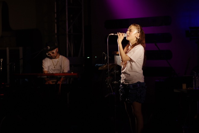 そして今回のゲスト、韻シストのBASIとサッコンが登場。即興のラップで会場を沸かせた後、韻シストプロデュース楽曲の「I want it」で、会場全体が一気にヒートアップし、ステージとフロアが一体となる盛り上がりをみせた。さらに、SOIL&“PIMP”SESSIONSの社長をプロデュースに迎えた「Crazy Days」では、ILMARIのラップ部分をAzumiが歌い上げ、会場は熱気に包まれ本編を終了。