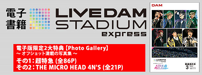 超特急 全86P & THE MICRO HEAD 4N’S 全21Pの豪華フォトギャラリー2本立て、買えるカラオケ目次本電子版「LIVE DAM STADIUM express」3月号