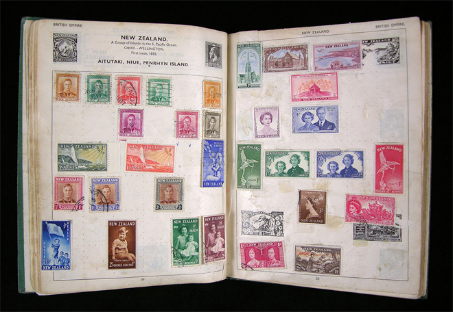 アルバムは国別に切手を貼るようにできており、英国、オーストラリア、ニュージーランド、カナダ、インド、アイルランドのページに多くの切手が見られる。専門家によると、少年が集めたものらしく高価だったりレアな切手はないという。