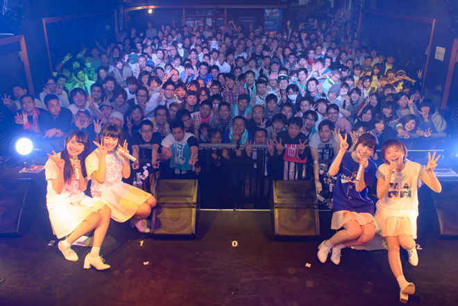 重大発表のあとに続くはファーストシングル「ナモナイオト」を披露。まだ、研究生だった彼女たちが初めて出したCD。当時の彼女たちは自分達が「心斎橋BIGCAT」に立つ事を想像できただろうか? 重大発表をした後にも関わらず、とても肩の力が抜けた見ているこっちが「ホッと」するようなパフォーマンスを見せてくれた。