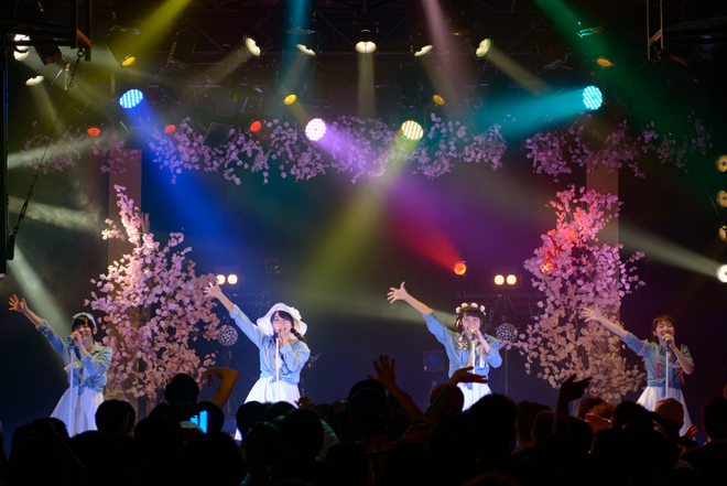 ここで披露したのは6曲目の「キラ☆ヒラ レボ★エボ(新曲・初披露)」。とっても前向きなポップナンバーだ。7曲目は「ギ・ミ・ユ・ラ(新曲・初披露)」。女の子の日ともいえる「ひな祭り」なのに、とってもせつない女心が悲しい。ミライスカートには珍しい悲恋なナンバー。いつもの元気なダンスとは打って変わって、悲しくも女性の強さをどことなく感じた。